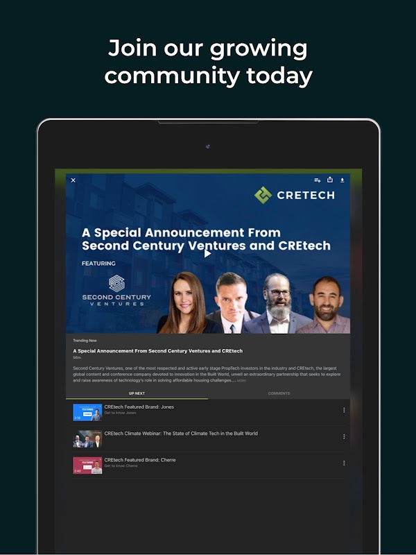 CREtech+ হল বিল্ট ওয়ার্ল্ডে উদ্ভাবন এবং প্রযুক্তির প্রতি নিবেদিত প্রথম স্ট্রিমিং প্ল্যাটফর্ম, যেখানে বিশ্বের শীর্ষস্থানীয় রিয়েল এস্টেট এবং প্রযুক্তি পেশাদারদের সাথে নতুন সাপ্তাহিক ভিডিও দেখানো হয়।