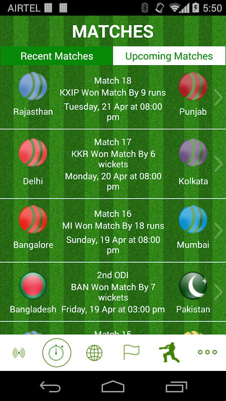 View the score-card of recently played matches with this cricket score app.