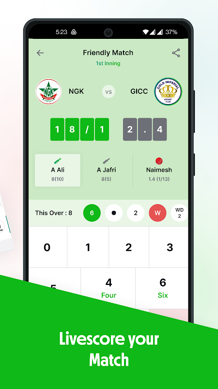 স্কোরকিপার: বল-বাই-বল স্কোর ট্র্যাকিং একটি একক স্ক্রীন থেকে পরিচালিত হয় যা একটি লাইভ স্কোরশীটের সাথে সংযোগ করে