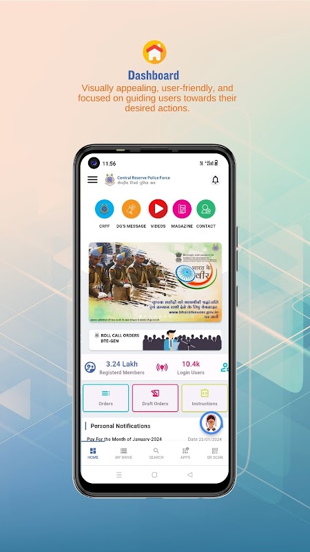 4. সাধারণ বিজ্ঞপ্তি: ব্যবহারকারী যেকোনো আপডেট এবং তথ্য সম্পর্কিত CRPF থেকে পুশ বিজ্ঞপ্তি পাবেন।