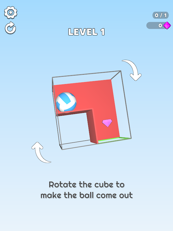 কিউবটি ঘোরান যাতে বলটি গর্তের মধ্য দিয়ে চলে যায়