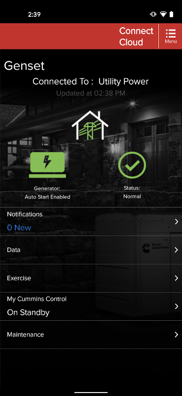 কামিন্স কানেক্ট ক্লাউড ™ সবচেয়ে ভালো উপায় আপনার বাড়িতে নিশ্চিত করার যখন আপনি এটি প্রয়োজন স্ট্যান্ড-বাই জেনারেটর পাওয়া যায়। আপনার জেনারেটর সম্পর্কে তথ্য পেতে, যে কোনো সময়, যে কোন জায়গায়। একটি থেকে-ব্যবহার সহজ এবং বন্ধুত্বপূর্ণ মোবাইল ইন্টারফেস সঙ্গে, এটা বিজ্ঞপ্তি পাঠায় এবং আপনি আপনার জেনারেটরের ঝটপট অ্যাক্সেস দেয়।