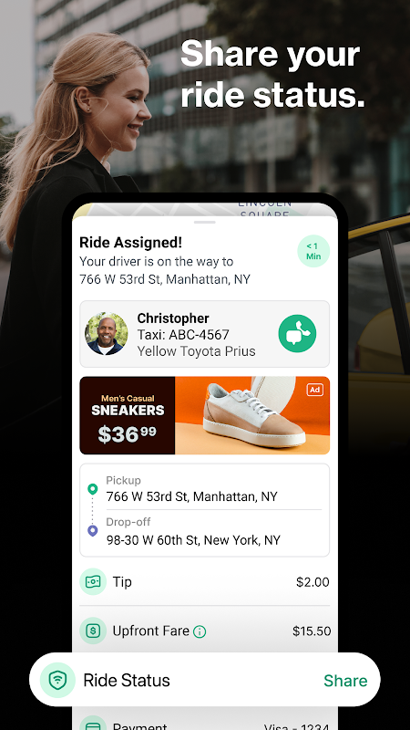 **আপফ্রন্ট মূল্যের ভাড়া স্বয়ংক্রিয়ভাবে সময় এবং দূরত্বের উপর ভিত্তি করে আপনার ভ্রমণের জন্য গণনা করা হয়। তারা আনুমানিক রুটের উপর ভিত্তি করে টোল এবং প্রযোজ্য সরকার-নির্দেশিত ট্যাক্স/সারচার্জের একটি অনুমান অন্তর্ভুক্ত করে। যেকোন টিপের পরিমাণ রাইডের শেষে প্রয়োগ করা হয় এবং তা আপফ্রন্ট প্রাইসিং ভাড়ায় অন্তর্ভুক্ত করা হয় না। প্রকৃত ট্যাক্স/সারচার্জ, টোল এবং টিপের জন্য ট্রিপের শেষে ভাড়া সামঞ্জস্য করা যেতে পারে। NYC, ওয়াশিংটন ডি.সি., বোস্টন, ফিলাডেলফিয়া, শিকাগো, মিয়ামি এবং লাস ভেগাসে উপলব্ধ৷