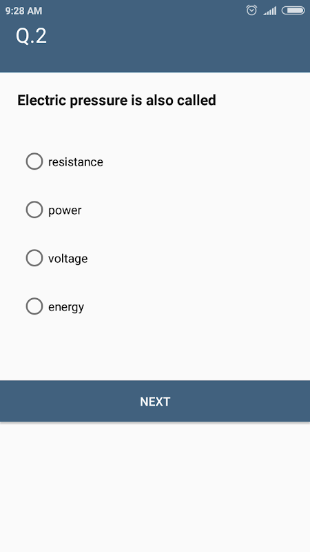 An MCQ Quiz Android Application for the subject of Current Electricity.