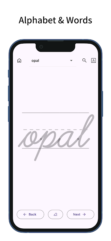এই অ্যাপটি আপনাকে ট্রেসিং করে কার্সিভ অনুশীলন করতে দেয়।