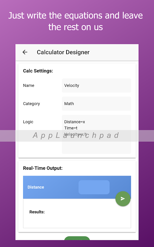 - Outputs contains formula like this: Velocity=x/t,Square=x^2