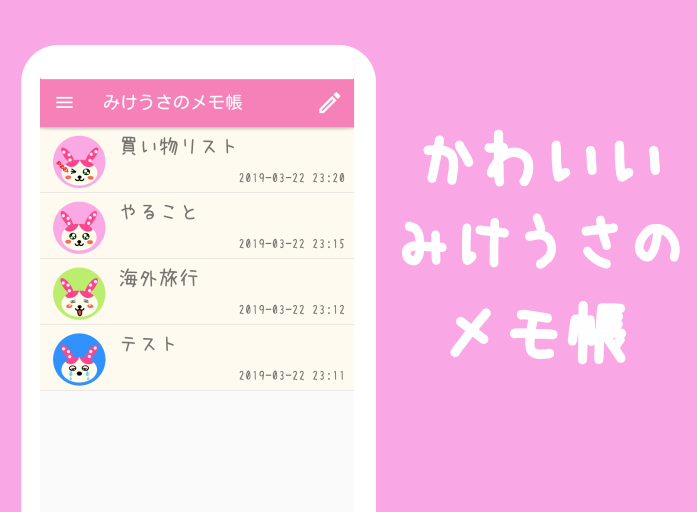 みけうさのメモ帳 - 文字までかわいいメモ帳アプリ 1.13