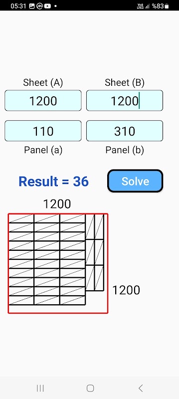 When various sheet and part dimensions are entered,