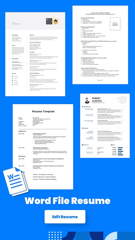Resume Maker অ্যাপ্লিকেশন নিচের কার্যকারিতা অফার করে: