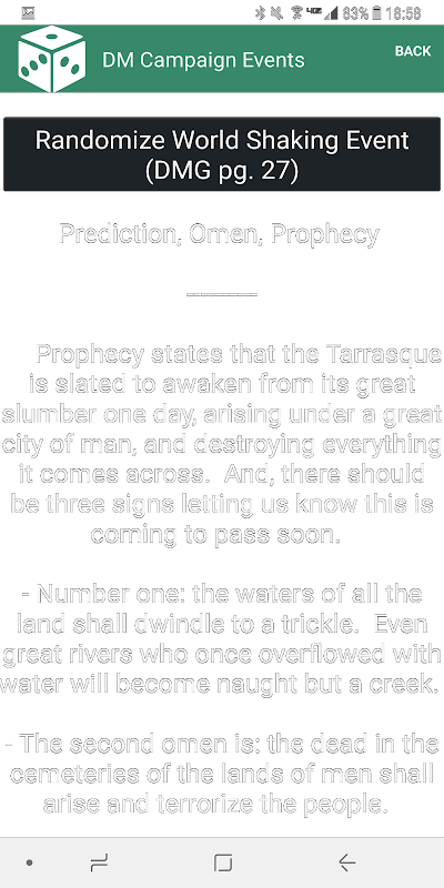 - প্রচারাভিযান হাব - আপনার কাস্টম মহাবিশ্বের বিবরণগুলি অক্ষরগুলির সমর্থন সহ (ডিএন রিসোর্স থেকে এলোমেলোভাবে NPC সহ), জন্তু, জাদুবিদ্যা, ধর্ম এবং ঈশ্বর, জাদু আইটেম এবং আরও অনেক কিছু সংগঠিত করতে সাহায্য করে!