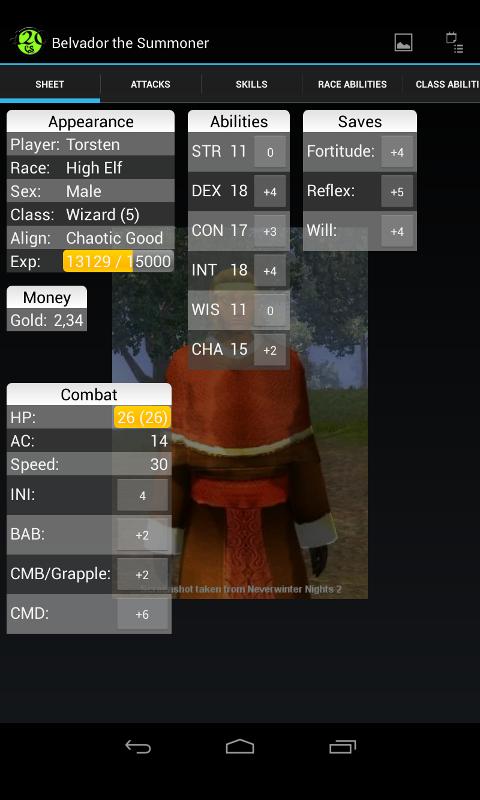 * নাম, খেলোয়াড়, রেস, লিঙ্গ, সারিবদ্ধকরণ, ক্লাস, স্তর এবং অভিজ্ঞতা পয়েন্ট