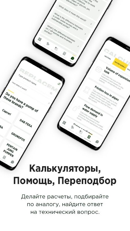 মোবাইল অ্যাপ্লিকেশনটিতে আমাদের ক্যালকুলেটরগুলির জন্য ধন্যবাদ, আপনি ফ্লাইতে গণনা করতে পারেন, উদাহরণস্বরূপ: প্রয়োজনীয় মাথা এবং (বা) প্রবাহের হার, সিস্টেমে রেডিয়েটারের সংখ্যা, সঞ্চয়ের পরিমাণ এবং অন্যান্য পরামিতি। সহজ, সুবিধাজনক এবং সর্বদা হাতে!