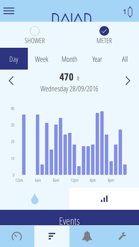 DAIAD te permite conocer y entender tu consumo en la ducha ayudándote a ahorrar agua, energía y dinero. Usamos tus datos de consumo facilitados por tu compañía suministradora de agua y cualquier otro contador que puedas tener en casa. Todos los resultados e información estarán al alcance de tu mano, cuando y donde los necesites. De forma global podrás mejorar tu consumo de agua a través de recomendaciones y alertas.