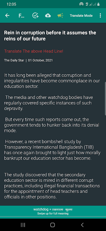 শব্দের অর্থ সহ মতামত এবং সম্পাদকীয় নিবন্ধ বিশ্লেষণ করে যে কেউ তার শব্দভান্ডার দক্ষতা উন্নত করতে পারে এবং শব্দভান্ডার যেখানে ব্যবহৃত হয় সেখান থেকে বাক্য উদাহরণ থেকে জ্ঞান অর্জন করতে পারে।