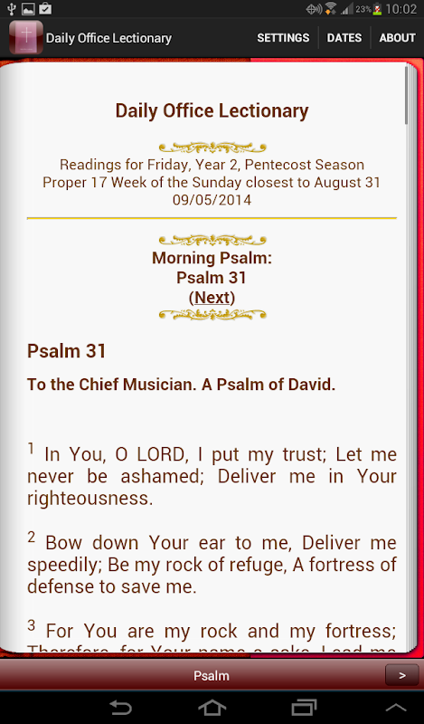এই অ্যাপ উদ্দেশ্য সাধারণত শুধুমাত্র তাদের প্যাসেজ অনুযায়ী তালিকাভুক্ত করা হয় যে সম্পূর্ণ দৈনিক অফিস Lectionary ধর্মগ্রন্থ প্রদান করা হয়. এই এই ধর্মগ্রন্থ সন্ধান করা হচ্ছে থেকে পাঠক করতে সক্ষম হবেন. আমি এখন আমার নিজের পরিবারের সাথে ব্যবহারের জন্য এটি তৈরি আস্বাদিত আছে হিসাবে আপনি এবং আপনার পরিবার যতটা এই অ্যাপ্লিকেশন ভোগ.