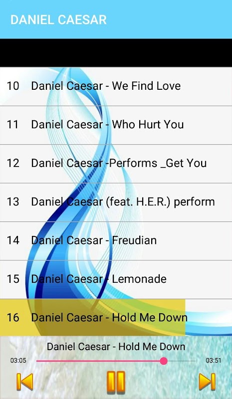 In this application you will find the best songs and novelties of "daniel caesar", download the free application on your smartphones for unlimited duration and enjoy the best hits with high quality sound and without Internet.