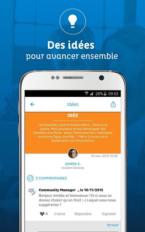 - Les idées formulées par la communauté pour aider à construire le Danone de demain.