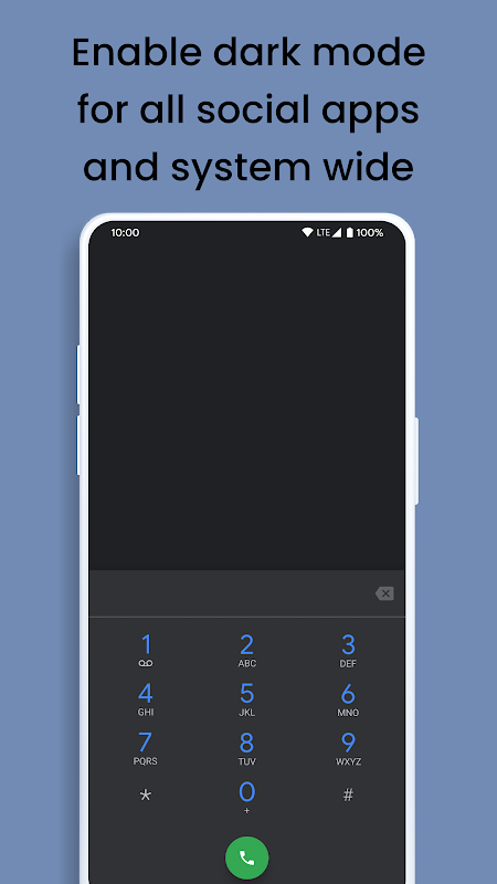 আপনি অ্যান্ড্রয়েড System-তে সিস্টেম ওয়াইড ডার্ক মোড উপভোগ করতে পারবেন আপনার পুরানো ফোনগুলিতে নাইট মোডে কাজ করুন এবং এই বৈশিষ্ট্যটি পান যা কেবল প্রিমিয়াম ডিভাইসের জন্য উপলভ্য। গা coming় মোড আপনাকে আলোর পরিমাণ কমাতে চোখের চাপ কমাতে সহায়তা করে, এই অ্যাপ্লিকেশন আপনার বেশিরভাগ অ্যাপ্লিকেশনগুলিকে অন্ধকার করতে সহায়তা করে যা ডার্ক মোড সমর্থন করে এমন সমস্ত সামাজিক অ্যাপ্লিকেশন সহ।