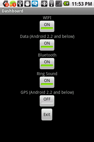 Quick access to controlling and viewing status of major phone options: GPS, WiFi, Data (in phones 2.2 and under), Ringer, and Bluetooth. Right on the home screen widget. Faster than notification drop-down and other manufacturer custom components that do the same thing.