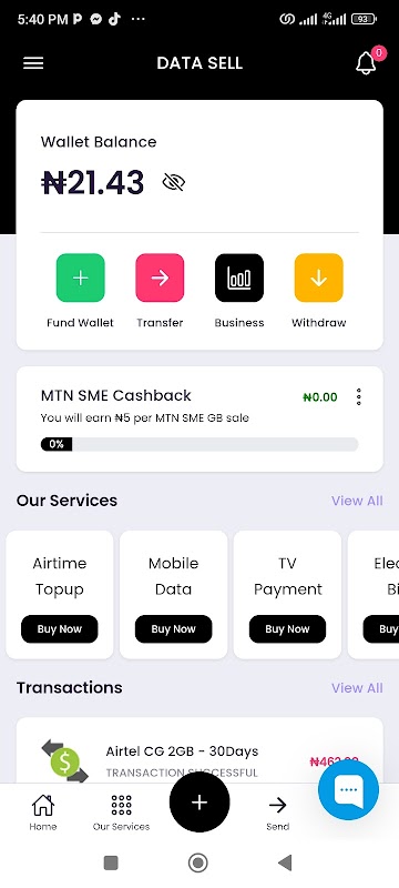 ডেটা বিক্রি: মোবাইল ডেটা, এয়ারটাইম, নেপা বিল, টিভি সাবস্ক্রিপশন এবং ডেটা পিন কেনার জন্য মোবাইল অ্যাপ।