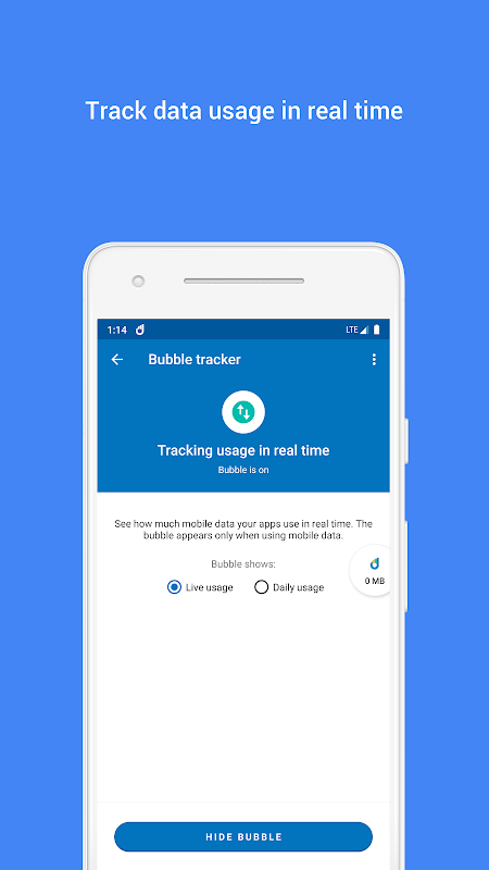 ● BUBBLE - Stay in control by seeing real-time data usage while using your apps.
