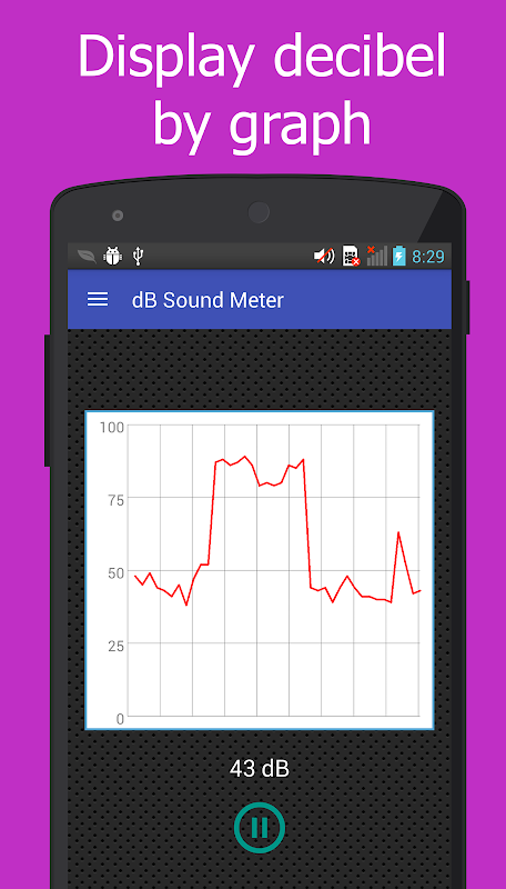 উল্লেখ্য: এই শব্দ স্তর মিটার বিল্ট ইন মাইক্রোফোন ব্যবহার করে, পরিবেষ্টনকারী গোলমাল মাত্রা পরিমাপ যার ফলে অ্যাপ্লিকেশন একটি পেশাদারী গোলমাল মিটার হিসাবে হিসাবে নির্ভরযোগ্য নয়, কিন্তু এটা আনুমানিক মান দেয়. সর্বাধিক মান ডিভাইস দ্বারা সীমাবদ্ধ হতে পারে না (- 90 ডেসিবল প্রায়ই সীমা পরিসীমা 80 ডেসিবল হয়). খুব জোরে শব্দ স্বীকৃত নাও হতে পারে.
