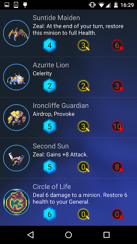 This application that help users to build decks. It is also a Duelyst card database that lists every cards from the game "Duelyst" made by Counterplay Games.