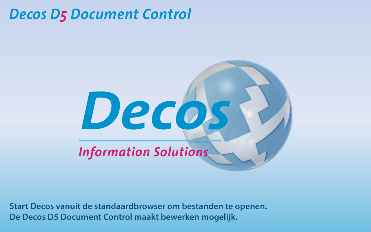 The Decos D5 Document Control app runs in the background and is thus largely invisible to the user. The app will only become active if the user is logged in to the Decos D5 web application and opens a file from the web application.