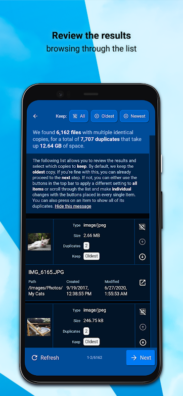 • সঠিক সনাক্তকরণ: ফাইল হ্যাশ মান ব্যবহার করে শুধুমাত্র সঠিক ডুপ্লিকেট সনাক্ত করা হয়। ফাইলের নাম উপেক্ষা করা হয়; বিষয়বস্তু অভিন্ন হতে হবে।