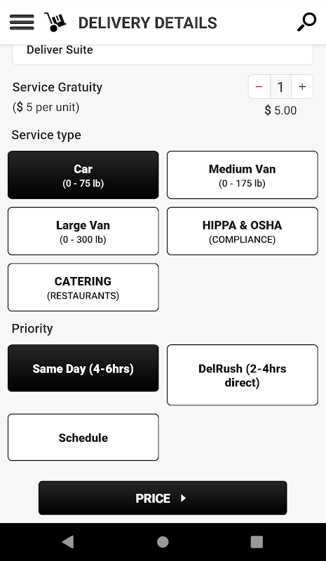 We provide on-demand, SAME-DAY and Schedule delivery services.
