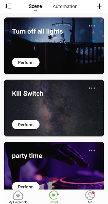 বাড়ির অটোমেশনকে সর্বোচ্চ করে তোলার জন্য নির্বাচিত ইভেন্ট প্রক্রিয়াতে পণ্যগুলি নিয়ন্ত্রণ ও পরিচালনা করতে অ্যাপে স্মার্ট পরিস্থিতি তৈরি করুন