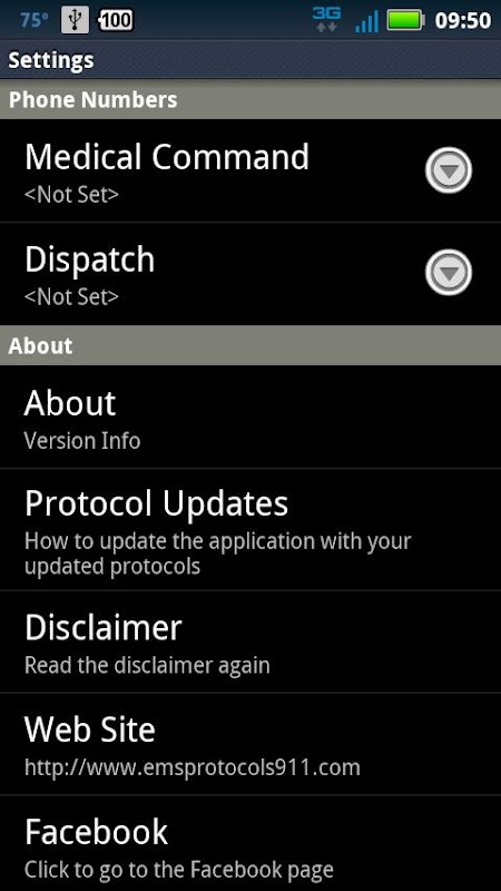 You are able to enter 2 phone numbers into the application. These numbers are meant to be for your medical command and dispatch numbers. You are able to call these numbers from inside this application.