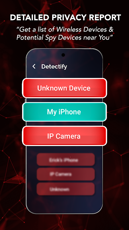 সনাক্ত করুন - লুকানো ডিভাইস সনাক্ত করুন আপনার গোপনীয়তা সহচর যা আপনাকে সম্ভাব্য লুকানো ক্যামেরা, গুপ্তচর ডিভাইস, লুকানো মাইক্রোফোন এবং অন্যান্য সন্দেহজনক ইলেকট্রনিক্স সহ লুকানো ডিভাইসগুলি খুঁজে পেতে সহায়তা করে৷ ডিটেকটিফাই অ্যাপের সাহায্যে আপনি হোটেল, বেডরুম, অফিস, বাথরুম এবং পাবলিক স্পেসে আপনার গোপনীয়তা রক্ষা করতে ডিটেকটিফাই হিডেন ক্যামেরা অ্যাপ, ডিটেক্টফাই ডিভাইস ডিটেক্টর এবং উন্নত স্ক্যানিং মোডের মতো টুল পাবেন।