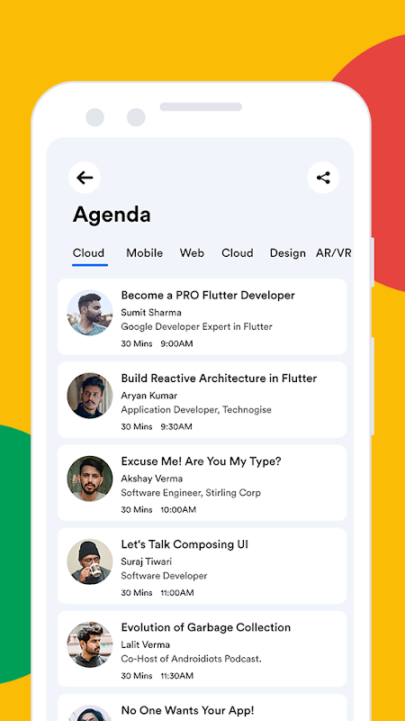সমস্ত ইভেন্টের বিশদ পেতে জিডিজির জন্য অফিশিয়াল ডেভস্টেস্ট মোবাইল অ্যাপ্লিকেশন।