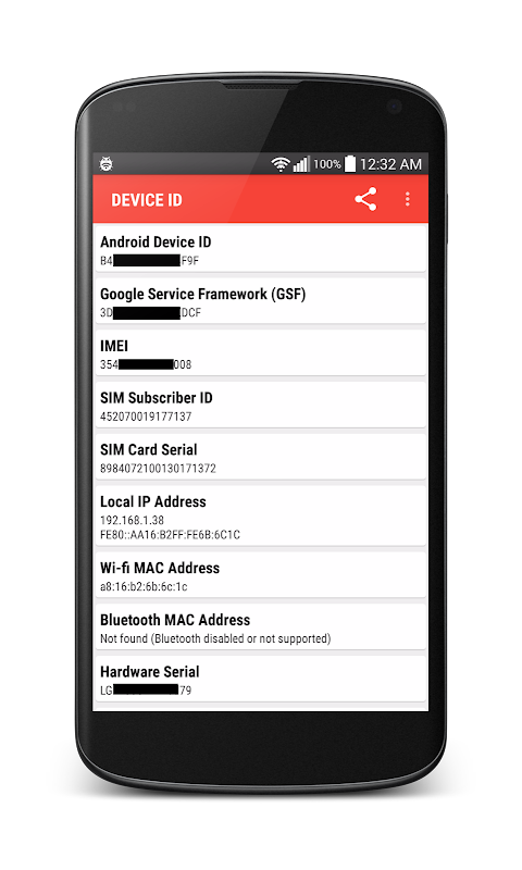 Simple app to get your Device Info/ID/local IP/MAC addresses & Serial that allow you easily copy and share the ID of your mobile device.