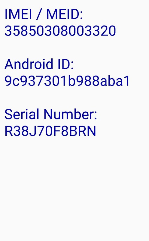 Simple display of the device identifiers.No frills, just IDs