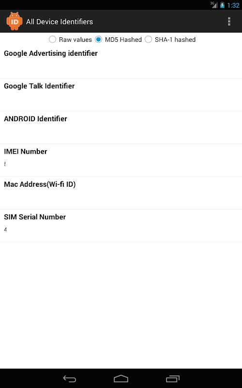 Check & share the raw/hashed versions of Available android device identifiers.