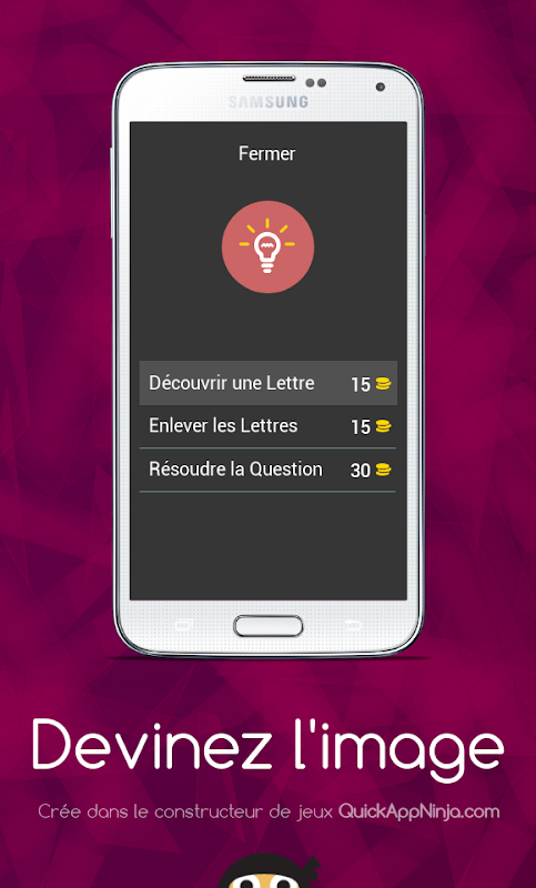 * Sauter le niveau - saute le puzzle. Vous pouvez l'utiliser si aucun autre indice ne vous aide et vous ne pouvez pas deviner l'image.