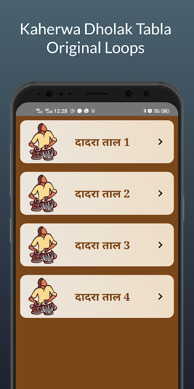 তবলা ঢোলক লুপস = বিভিন্ন তাল লুপ। কাহেরওয়া, দাদরা, তেন্তাল, দীপচণ্ডী, একতাল, গারবা, ঝাপতাল, পাঞ্জাবি, রাজস্থানী।