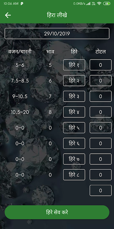 Daily দৈনিক হীরা যুক্ত করুন (দামের ভিত্তিতে এবং ওজনের উপর ভিত্তি করে)