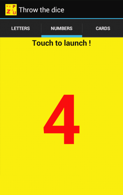 আপনি অক্ষর পরিবর্তে সংখ্যার একটি পাশা পাকানো করতে চান তাহলে এটি সহজে আবেদন! আপনি রোল পর্দা স্পর্শ, এবং আপনি ফলাফল পেতে!