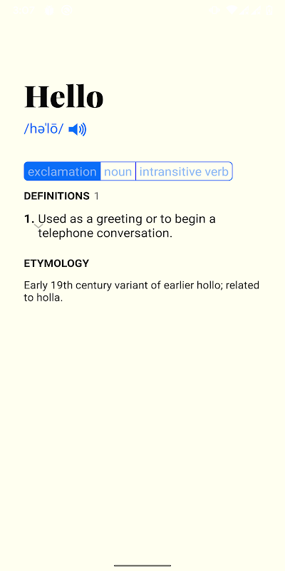 এটি কোনও বিজ্ঞাপন ছাড়াই উপলব্ধ কেবলমাত্র ইংরেজী অভিধান ব্যবহারের জন্য বিনামূল্যে। অ্যাপটির নকশাটি ন্যূনতম যাতে আপনি পড়াতে মনোনিবেশ করতে পারেন। অ্যাপ্লিকেশনটি নীল আলো প্রভাব কমাতে অনুকূলিত হয়েছে। অ্যাপ্লিকেশন অন্ধকার থিমও সমর্থন করে।