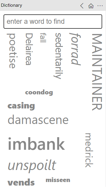 আপনি টাইপ করার সাথে সাথে অভিধানটি আপনার অনুসন্ধান করা শব্দটির উপর নির্ভর করে। তারপরে আপনি আরও শব্দের সংজ্ঞা পেতে সংজ্ঞা পৃষ্ঠার লিঙ্কগুলি অনুসরণ করতে পারেন। ওয়াইল্ডকার্ড অক্ষরগুলি ক্রসওয়ার্ড এবং স্ক্র্যাবলের মতো শব্দ গেমগুলিতে সাহায্য করার জন্য ব্যবহার করা যেতে পারে যেখানে কেবল কিছু অক্ষর জানা থাকে, অথবা আপনাকে একটি অ্যানাগ্রাম খুঁজে বের করতে হয়, অথবা বানান সহ। সংজ্ঞাগুলিতে সমার্থক এবং বিপরীতার্থক শব্দ অন্তর্ভুক্ত থাকে যা অভিধানটিকে একটি থিসরাস হিসাবেও কাজ করতে দেয়। স্পিচ ফাংশনটি সঠিক উচ্চারণ প্রদান করতে সহায়তা করে। আপনার ডিভাইস থিম ব্যবহার করুন অথবা কাস্টম রঙের সাথে গাঢ় বা হালকা থিম চয়ন করুন।