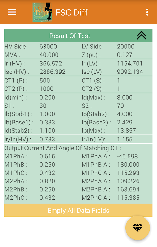 In this app, enter the transformer information like MVA, transformer ratio, vector group and short circuit impedance of transformer, and the app calculates the short circuit currents of high voltage side and low voltage side.