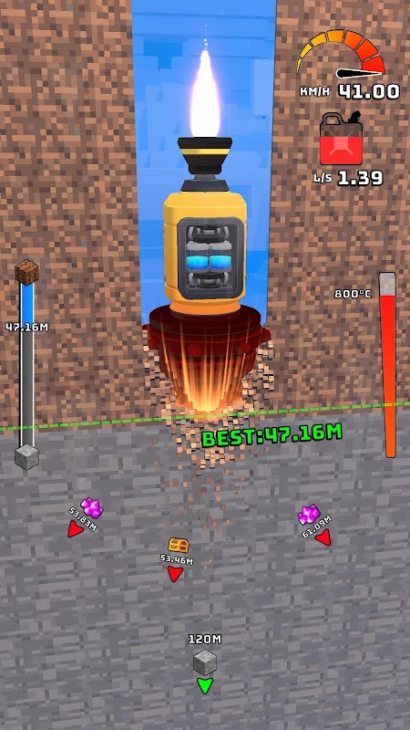 নতুন উপাদান কিনুন এবং আরো শক্তিশালী excavators তৈরি করতে তাদের মার্জ.