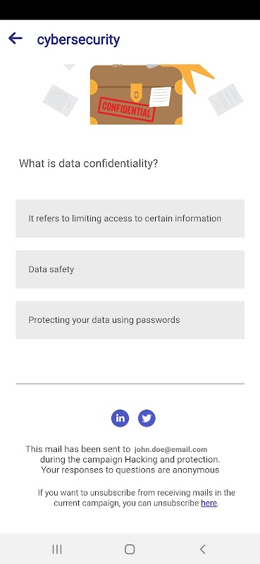 Once you log in, you will be able to set-up how would you like to receive messages (via your email account or via this application). The messages are in a form of quizzes, with the purpose of improving your mindset in an engaging and non-intrusive way. Each message will redirect you to a Feedback page, where you'll find out if you answered correctly or no.