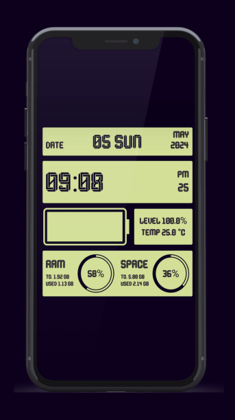 লাইভ ওয়ালপেপার সহ আপনার স্ক্রিনে রিয়েল-টাইম ডিভাইসের তথ্য এবং ঘড়ি পান!