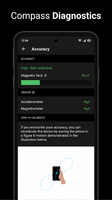 কম্পাস সঠিকভাবে কাজ করার জন্য আপনার ডিভাইসে ম্যাগনেটোমিটার এবং অ্যাক্সিলোমিটার থাকতে হবে।