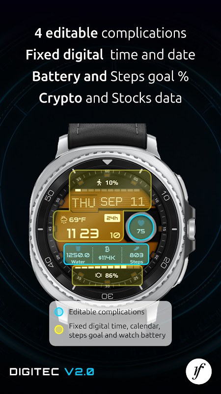 ⚠️ Digitec ওয়াচ ফেস শুধুমাত্র Wear OS 6+ স্মার্টওয়াচের জন্য ডিজাইন করা হয়েছে। এটি পুরানো Wear OS সংস্করণ বা অন্যান্য স্মার্টওয়াচ প্ল্যাটফর্মের সাথে সামঞ্জস্যপূর্ণ নয়।