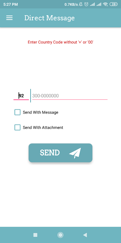 Note - Direct Message App or app developer are not associated with WhatsApp. WhatsApp is a registered trademark of WhatsApp Inc. You should follow their terms & condition while sending messages through Direct Message App.